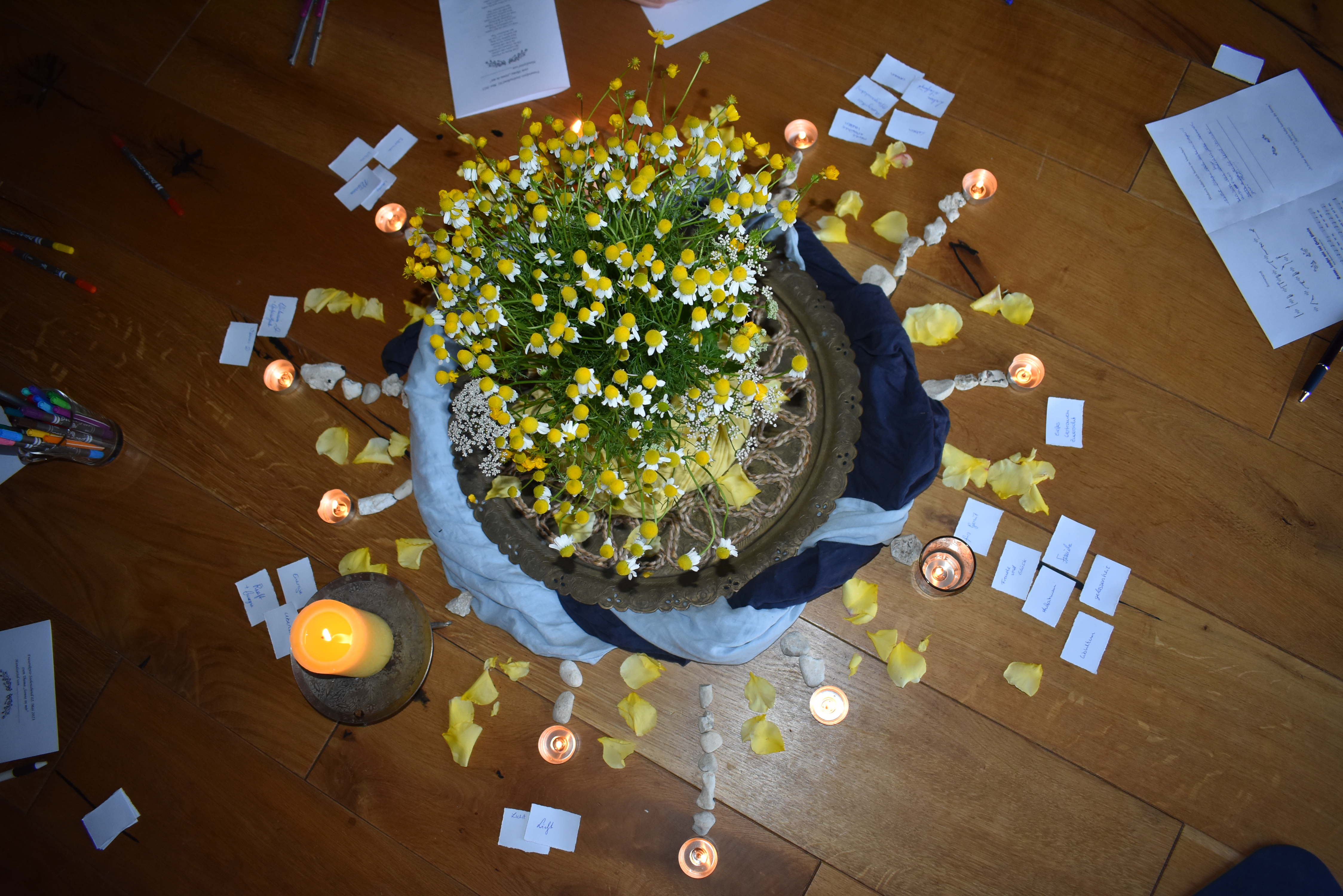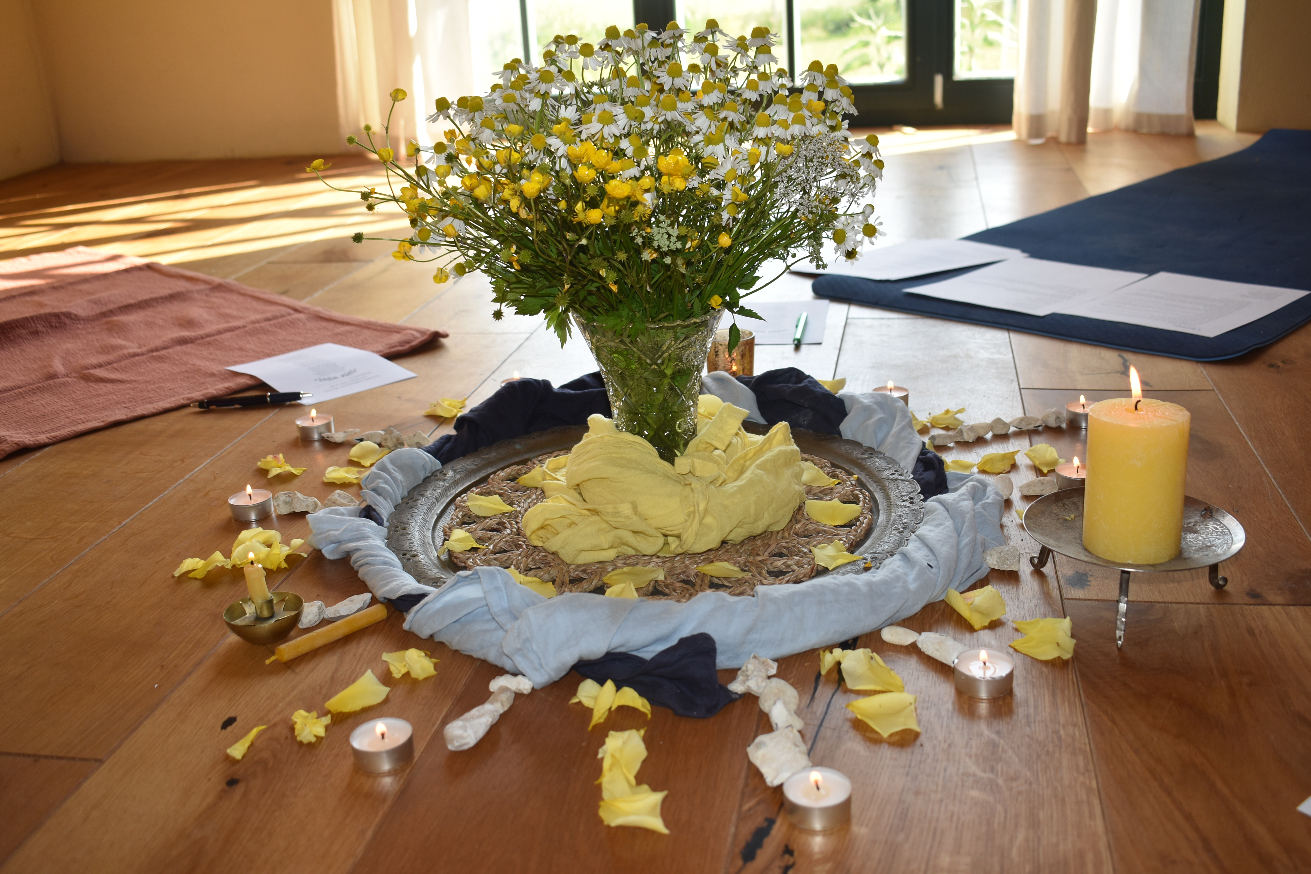 In einem geschützten Rahmen mit maximal 15 Frauen wollen wir unsere Seelen mit einer festlichen Zeremonie nähren. Diese kleine Feier spricht mit Licht, Klang, Worten, Blüten, Atem und Bewegung unsere Sinne an, öffnet unsere Herzen und unser Fühlen, bringt uns ganz zu uns selbst und in Verbindung zueinander und zu der Natur. Anschließend gibt es Raum zum Austausch.