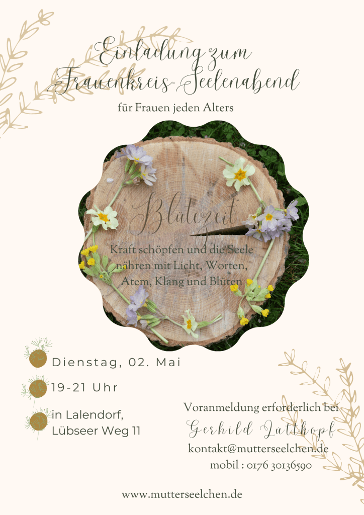 Einladung zum Frauenkreis-Seelenabend zum Thema „Blütezeit“